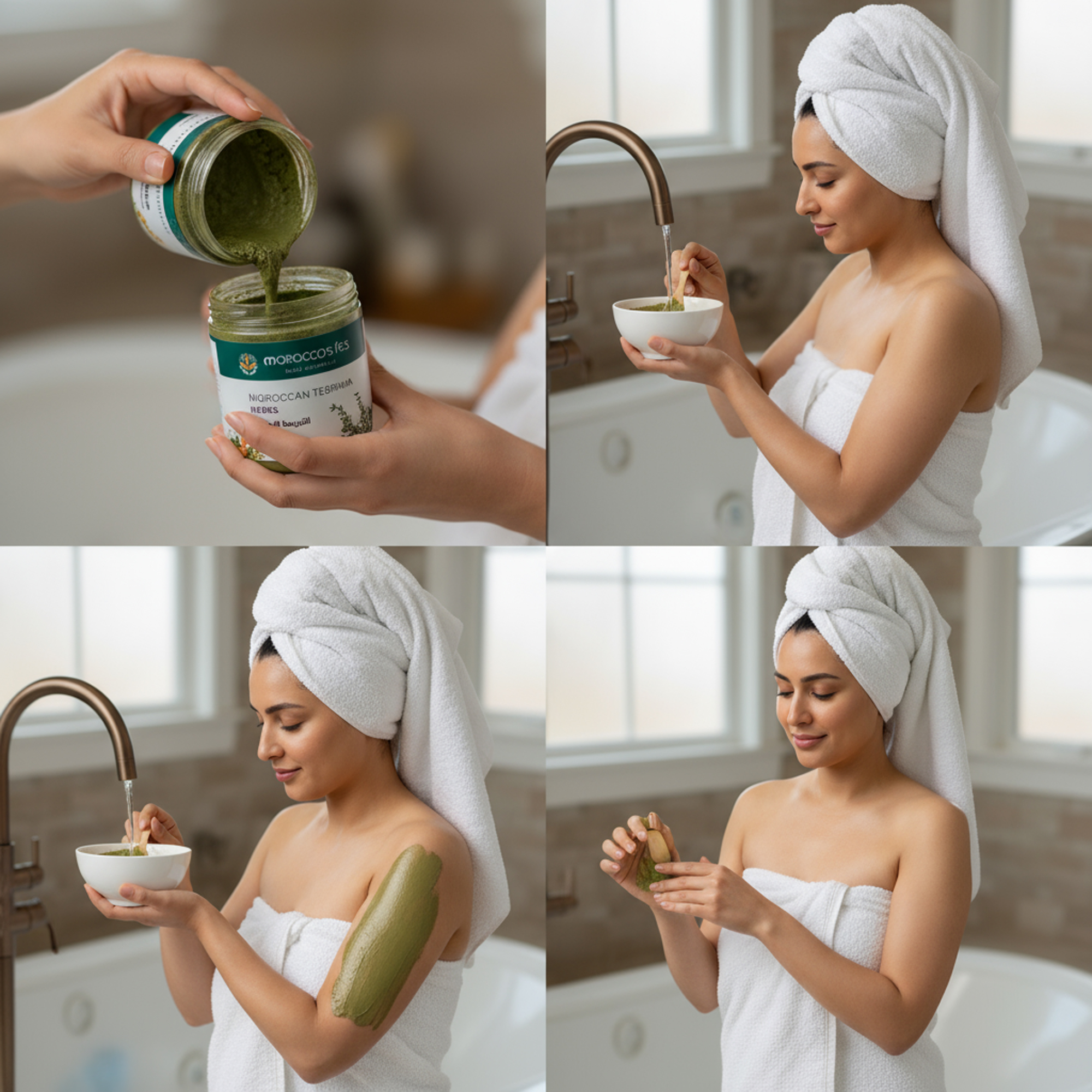 • تستخدم قبل الحمام المغربي لنتائج أفضل