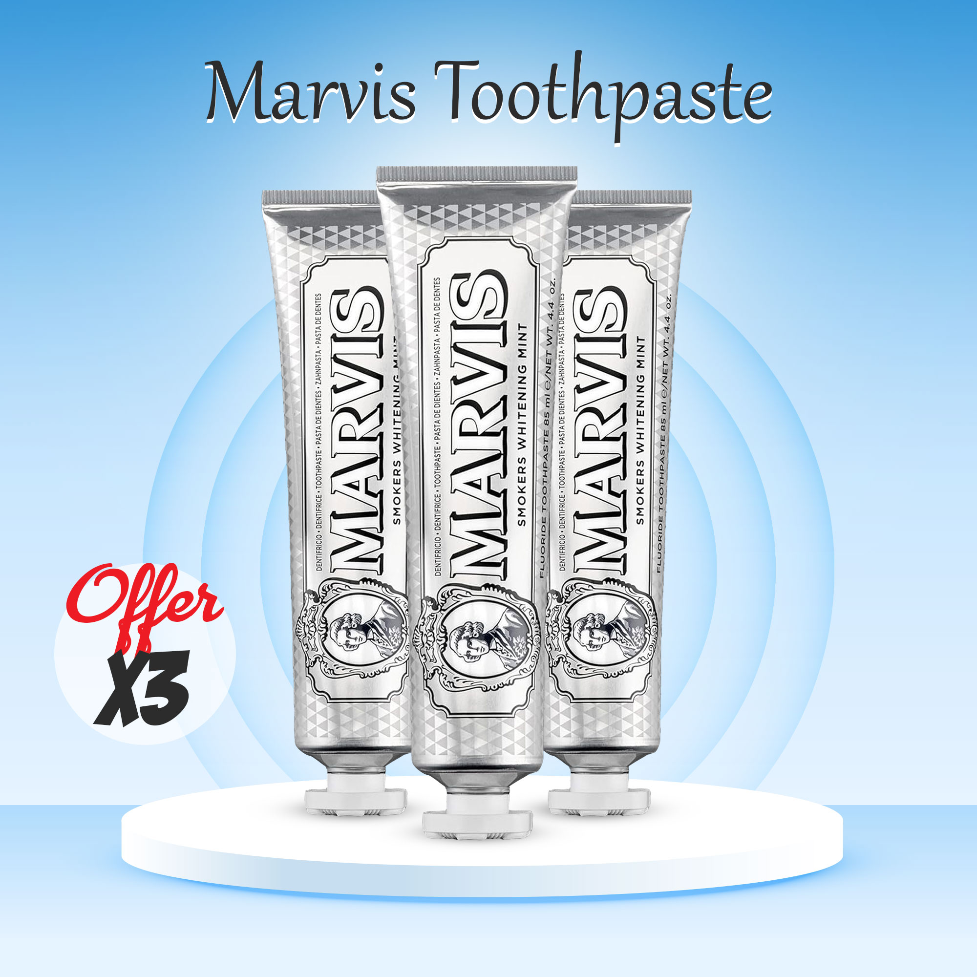 • 3 عبوة معجون أسنان مارفيس مبيض 85 مل